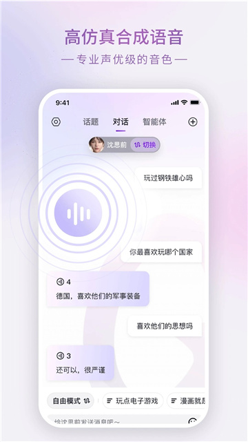 glow虚拟聊天允许用户定制自己的虚拟3D角色形象,在这里大家可以随心设置Glow的性别和身份,话题丰富多样让你在各种故事中尽情探索,界面设计简洁操作简单易上手,让虚拟人物能够陪伴用户随时随地进行聊天互动,无论谈论什么话题,它都能轻松接上。