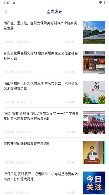 用户打开掌新南岸app,进入新闻资讯,即可查看或搜索南岸资讯。