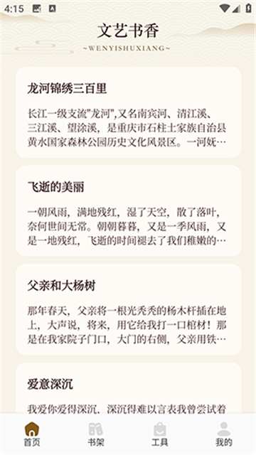 基于阅读时长、偏好等数据,智能推送适配的诗词佳作与小说新书,兼顾文化积累与休闲需求,自动保存诗词背诵进度、小说阅读节点,支持对名句、精彩段落添加批注与重点标记。