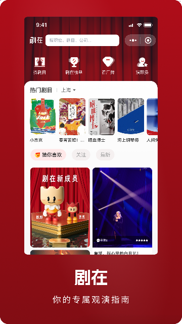 剧在APP是一款专为戏剧爱好者打造的综合性观演平台,深耕音乐剧、话剧、舞剧、演唱会等领域,提供一站式观演服务。通过智能搜索、精准推荐、实时资讯等功能,帮助用户快速发现心仪剧目,并支持折扣购票、观演记录、社区互动等特色服务。无论是资深剧迷还是新手观众,都能在剧在中找到专属的戏剧世界,沉浸式体验每一场精彩演出。立即下载剧在APP,开启你的戏剧探索之旅,让每一场演出都成为生活中的高光时刻!