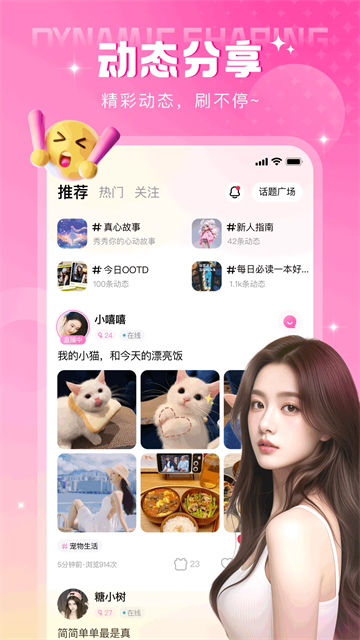 交友聊天趣味体验特别有趣,多种广场动态的更新;