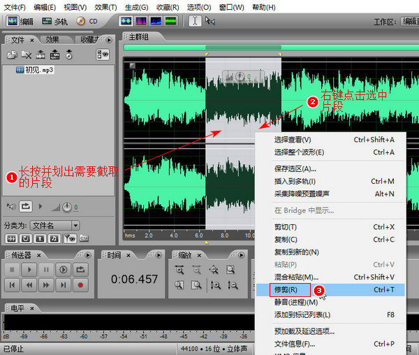 1、可以播放音频文件,去掉无用的内容,只留下精彩的部分!