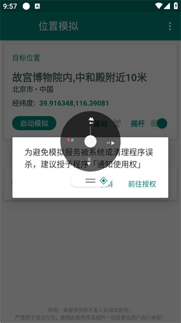 一款功能强大的虚拟位置模拟软件。软件支持钉钉、高德等定位功能,完全免费使用,没有任何的广告和付费内容,支持用摇杆的方式去进行位置的移动,更加的生动有趣,还可以根据手机的朝向去进行相对移动方向,简单并且无任何的广告,小巧也比较的实用。