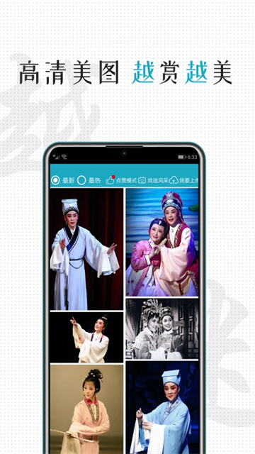欣赏带来的戏曲美图,还能直接下载到本地保存,或是直接设置手机桌面壁纸;