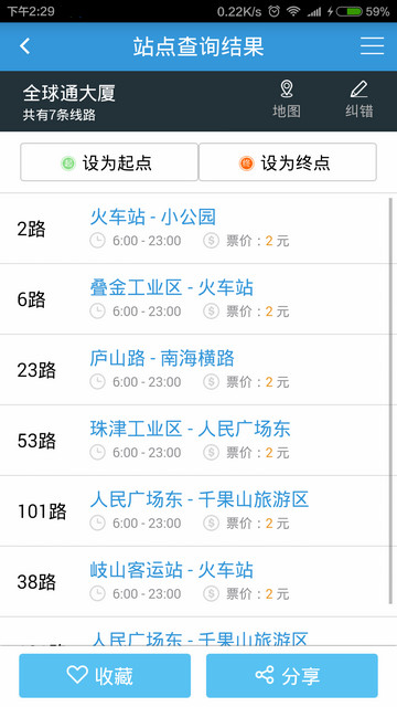 2、将线路添加到收藏夹,可以使用收藏功能将线路收藏,直接在收藏夹找到查询。