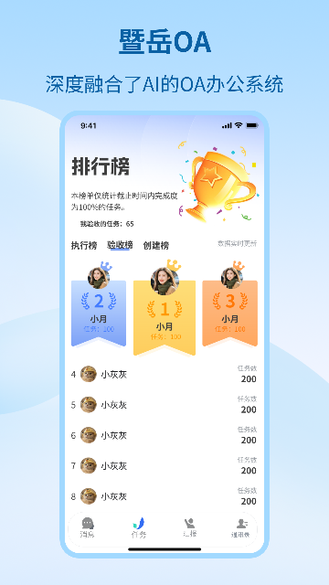 暨岳OA是一款集任务分配、进度监控与企业管理于一体的智能办公软件。它以简洁直观的界面和强大的功能,帮助企业管理员精准掌控团队效率,员工则能实时查看任务并同步进度,打破沟通壁垒,提升协作体验。新用户可快速创建企业,凭验证码即可邀请成员,轻松实现企业数字化管理。立即下载暨岳OA,体验高效企业管理APP,开启智能办公新模式!
