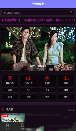 《会源影视》中可以轻松的观看各种热门的影视资源内容,并且还有独特的观看方式可以选择,简单的操作方式,让用户可以更好的感受观看影视带来的精彩,全新的操作方式让用户可以更好的上手,通过搜索方式,让用户可以尽情在这里享受观看影视带来的精彩内容。