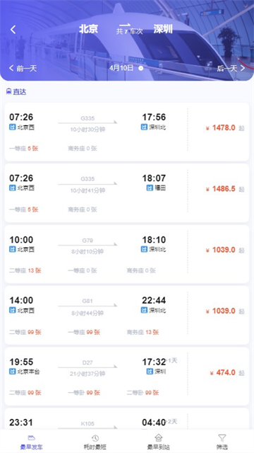 3、火车票预订:提供舒适的高铁车票预订服务,客户可以在线选座,确保旅途舒适。