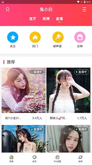 1、兔小白直播上有各种精彩节目,各种外表好看的女主播带来了各种各样的才能