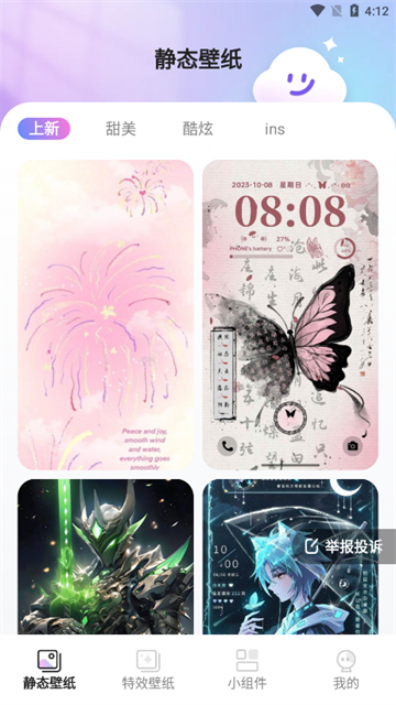 1、进入【静态壁纸】界面,选【上新】标签,浏览并挑心仪壁纸(如动漫风格)。
