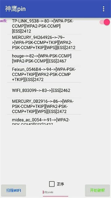 神鹰pin是一款提供wifi密码的实用工具,它可以直接搜索附近所有的无限网络,重点是不需要root权限就可以轻松破译,整体界面极其干净,无广告,解密过程极其便捷,让繁琐复杂跑PIN工作中越来越轻松自在,支持批量解密,快速发现弱秘密,感兴趣的赶紧来试试看吧。