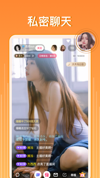 2、你不仅可以看有趣和受欢迎的现场直播,还可以通过在线聊天与主播成为朋友。