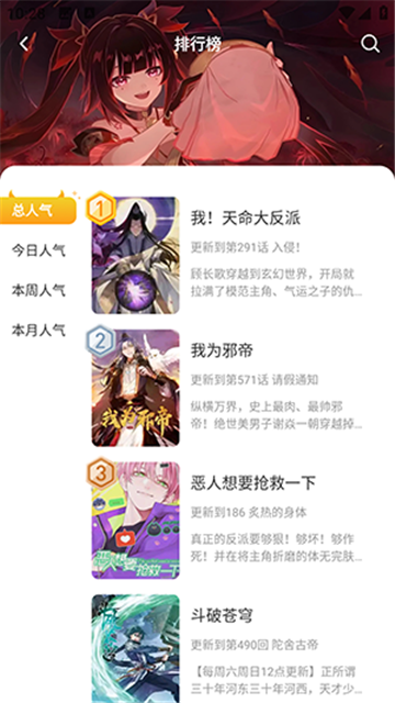 所有漫画都可以任意的畅读,每天都会及时更新,全彩无广告;