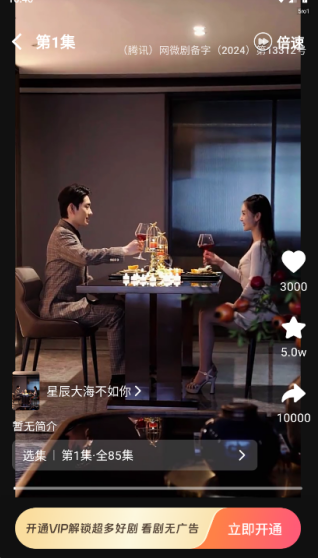 2、选择你想观看的一部短剧进入,可以直接观看全集,还可以点赞、收藏和转发,也可以选择不同的集数