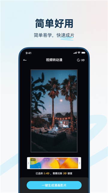 2. 功能强大:除了基础的视频编辑功能外,还具备强大的动漫转换能力,让用户无需专业设备即可实现专业级的视频效果。