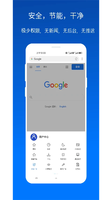 X浏览器无后台进程,只申请6个权限,不会窃取您的隐私,安全、省电、省流量。