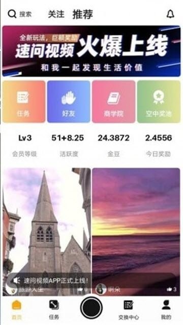 速问视频APP手机版是一款非常好用的短视频类服务软件,有着很多好看的短视频可以供你免费观看,还可以使用这款软件来赚钱,平台给大家带来超多的任务,而且都是通过手机可以完成的,还能通过发视频和邀请好友都可以获得佣金奖励,只需要在线进行视频的观看与点赞就可以了开启赚钱了,十分的不错,欢迎你的下载。