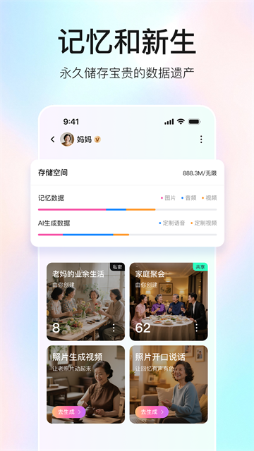 轻松创建专属记忆库,保存和亲人的精彩生活画面;