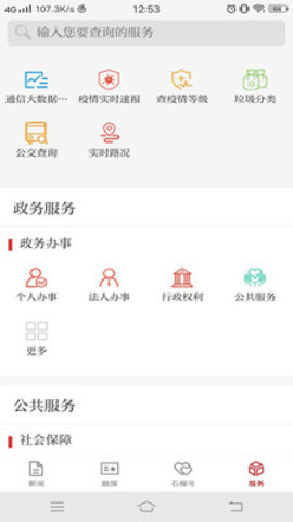 4、石榴云app积极探索“新闻+服务”模式,对接党政技术平台打造覆盖党建服务、政务服务、公共服务、便民服务的“服务”板块。