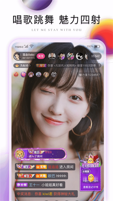 直播间24小时不间断,激烈PK排位赛,活动不停歇,关注你喜爱的主播,赢取尊贵身份勋章。