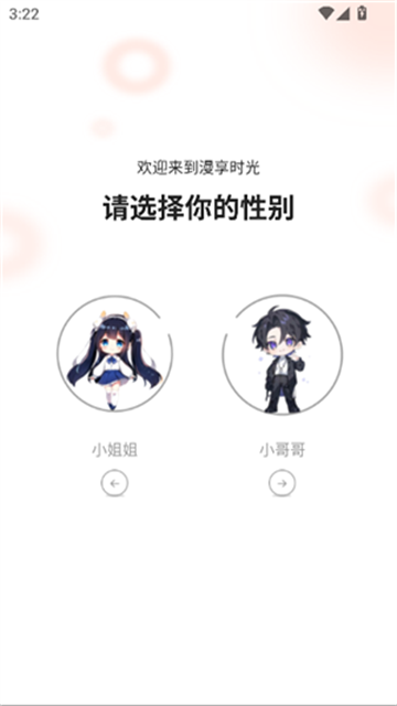 1、打开软件选择性别和类型以便为你精准推荐漫画。