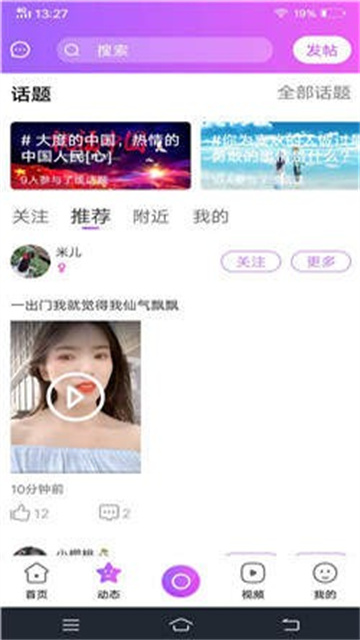 4、会推荐您感兴趣的用户,关注对方以后就能获取对方发布的各种视频内容;