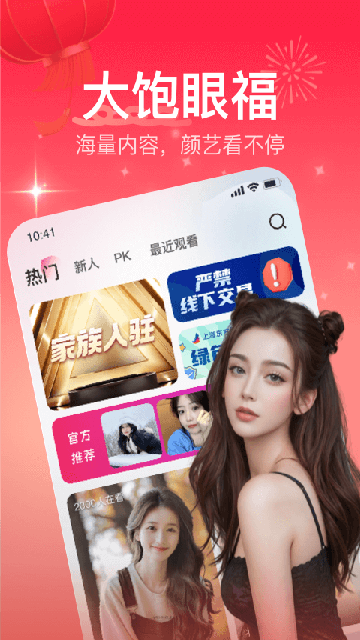 2.海量主播实时互动,平台汇聚众多高颜值主播,涵盖美妆、游戏、音乐、健身等多个领域,用户可通过弹幕、点赞、评论等方式与主播实时交流。