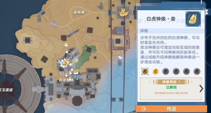 1、首先传送到白虎神像娄,一路向前来到晨林道。在图示位置就是第一个地点。