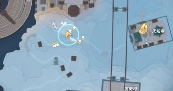 5、随后我们返回天佑寺内的传送点,一路向西出发,来到图示区域,就是最后一个地点。