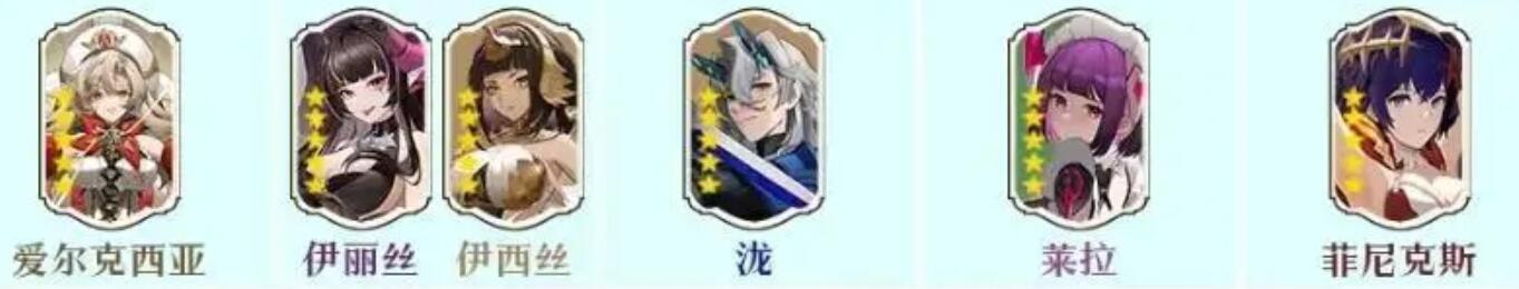 T0:爱尔克西亚、伊丽丝伊西丝、泷、莱拉、菲尼克斯。