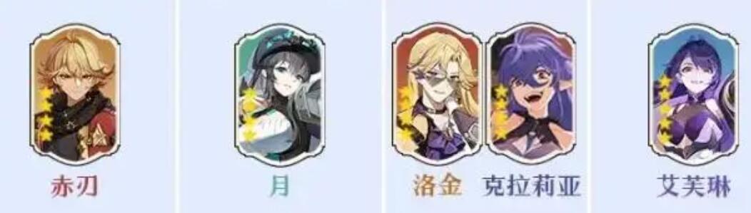 T3:赤刃、月、洛金、克拉莉亚、艾芙琳。