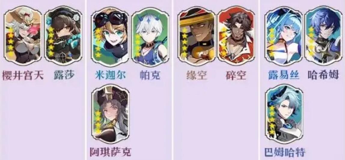 T1:樱井宫天、露莎、米迦尔、帕克、缘空、碎空、露易丝、哈希姆、阿琪萨克巴 姆哈特。