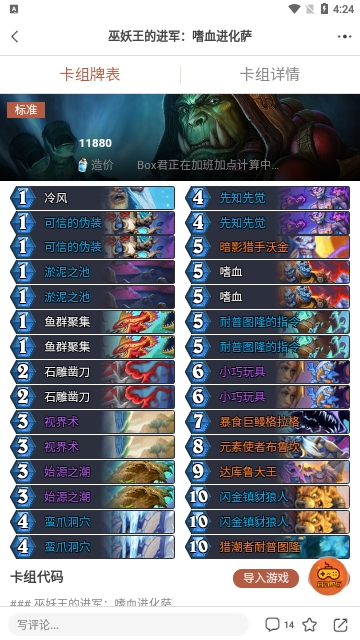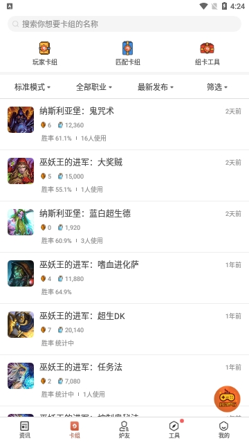 炉石盒子APP卡组库与PC版互通,为玩家提供准确的卡组对阵九职业胜率、热度、造价等数据信息进行参考,同时过万套卡组满足不同游戏阶段玩家所有需求。