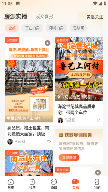 5、大家还可以通过观看实播,查看的正在拍卖和即将拍卖的房子。