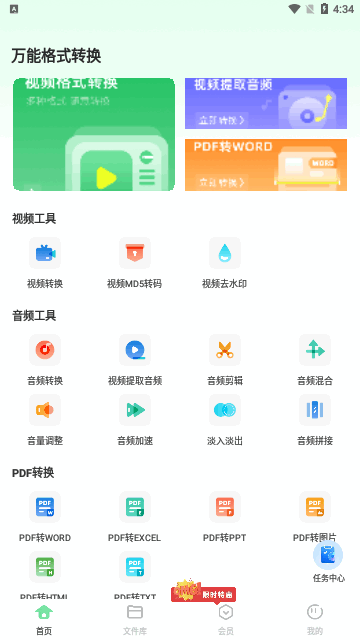 1、文件转换,支持图片转pdf、TXT转PDF、表格转PDF、PDF转图片等多种格式转换。