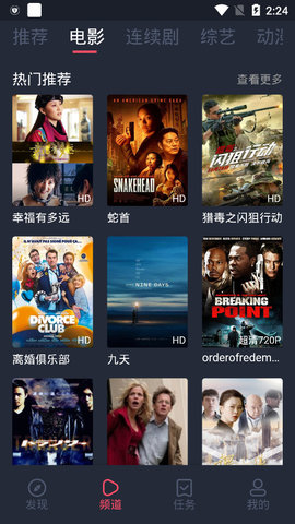 2、在首页,每天都会为用户推荐各种最新、最热的影视,不知道看什么的用户,可以有一个很好的参考。