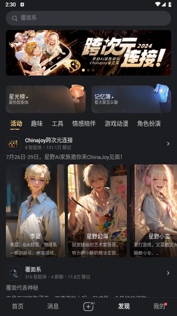星野app是一款沉浸式虚拟AI扮演社交软件,不仅可以随时随地进行聊天,还可以快速回答用户提出的问题,还可以自由定义智能体的形象、声音、人设,并与他们进行互动,并且还可以将你的创作分享给其他人。感兴趣的朋友们,快来下载体验吧。