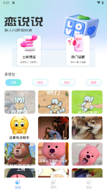 1、在聊吧页面,可轻松实现情感和爱情测试,还能在线查找和下载情侣头像。