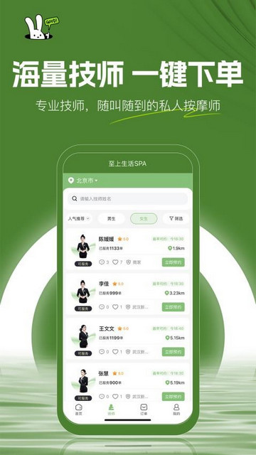 4、还可以直接查找专业技师指定技师进行上门按摩服务的预约下单操作。
