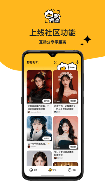 妙鸭相机是一款非常好用的手机拍照软件,在这里有着很多的拍照服务软件给用户们进行使用,所有的拍照功能都是免费给用户们提供的让用户们拍出自己满意的照片,所有的服务在这里统统都有绝对能够让用户们对这款软件超级的满意让你拍出好看的照片。