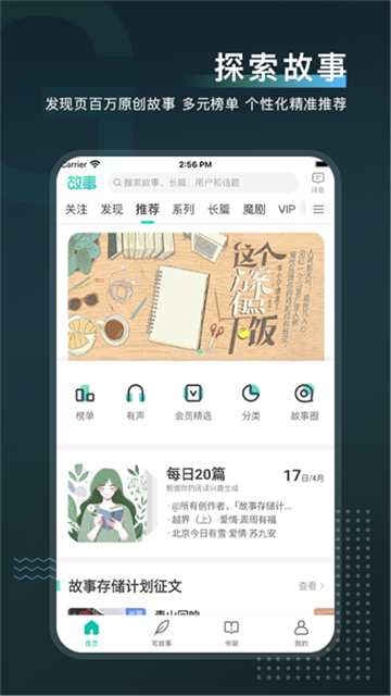5、万人热追故事:六大客户端超十五亿点击率,签约作家、万人热追——只在故事app。