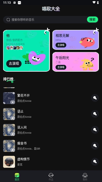 1、用户在其中可以选择自己喜欢的歌曲演唱,满足日常演唱娱乐需求。