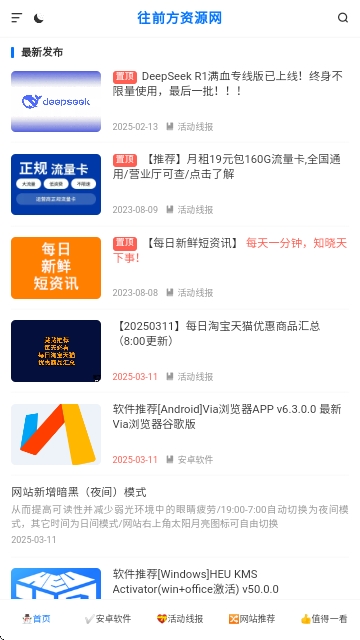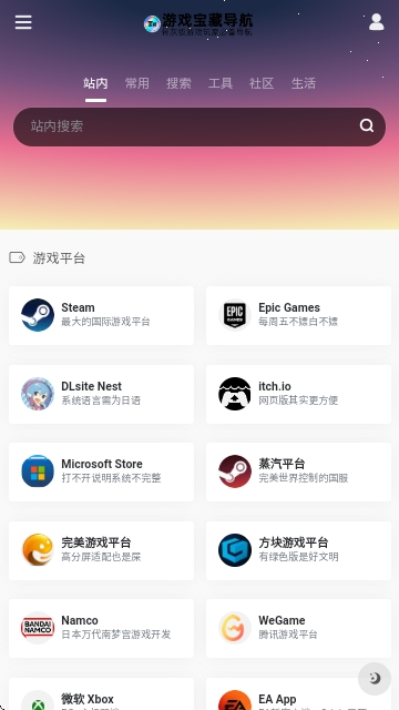 2、资源聚合平台,涵盖了游戏、壁纸、搜索、工具等多个版块内容。