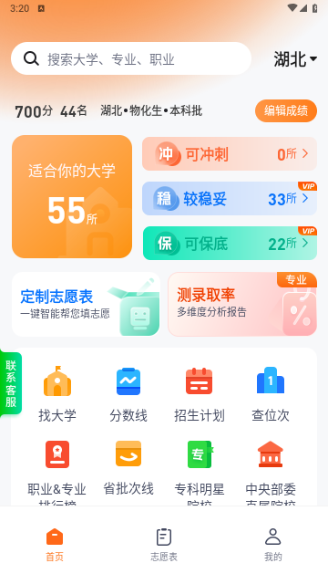 智能匹配:根据考生的分数和志愿偏好,智能匹配适合的院校和专业,提高录取概率。