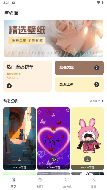 1、涵盖许多精选动态壁纸内容,热门壁纸榜单信息不错过。