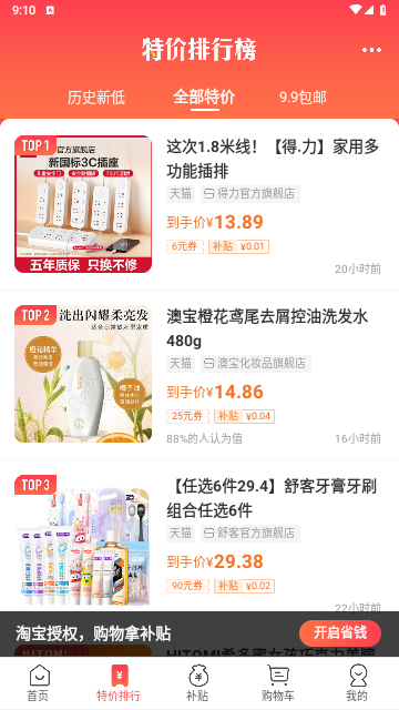 特价商品推荐:软件每天筛选推荐优质、优惠的特价商品,帮助用户解决选择困难的问题。