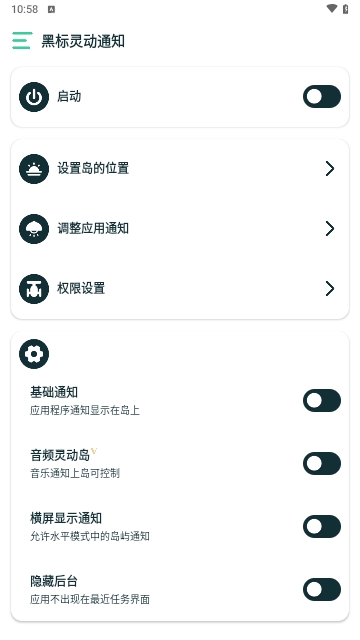 黑标灵动通知是一款安卓灵动岛软件,让你其他的手机上享受到ios的各种功能,主要是增加了悬浮框灵动岛,让你的每一次设置都很方便,将智能体验带入到你的手机中,还可以体验苹果系统最新的工具。针对不同的用户想法都能自由安排,呈现的画面效果很简洁。