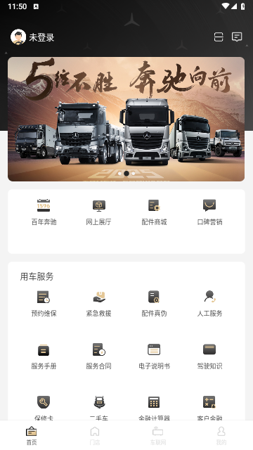 奔好运app是北京福田戴姆勒汽车有限公司倾力打造的中国商用车市场客户服务平台,主要服务于福田戴姆勒的奔驰品牌重型卡车,实现了客户与数千家经销商、服务站网络体系线上线下无缝对接的服务模式,解决用户在购车,用车,换车等场景的问题,并集维修保养车联网等功能一体的综合服务平台。