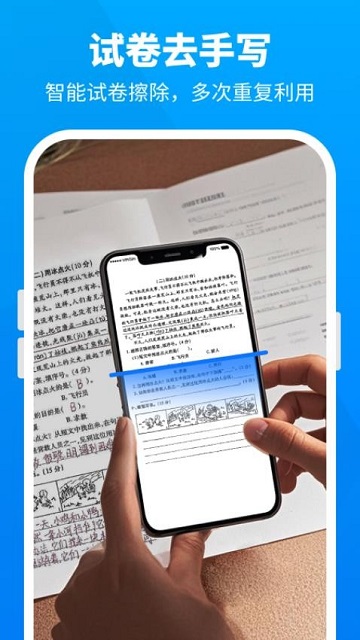 设有试卷去手写功能,可以一键智能去除试卷手写笔记,还原空白试卷。