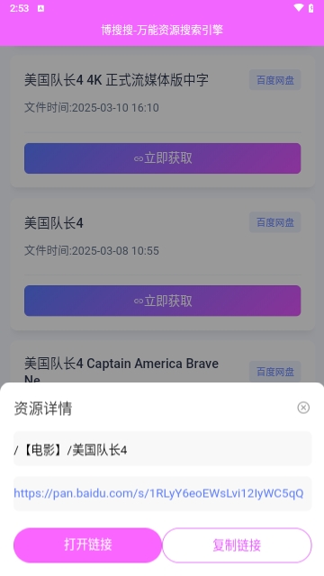 博搜搜APP提供给大家的网盘磁力搜索功能服务是非常强大的,可以帮助各位用户来轻松快速搜索到你自己想要的磁力资源,影视、音乐、图片、软件等都是可以在这里搜索找到的,还可以一键粘贴复制下载,使用起来非常的简单欢迎大家来下载。
